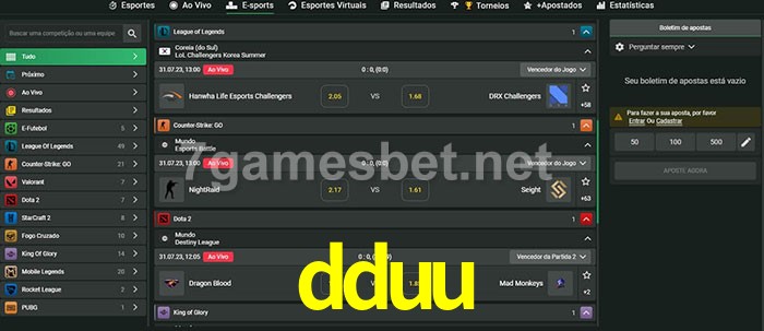 O dduu oferece uma grande seleção de opções de apostas em e-sports com probabilidades competitivas